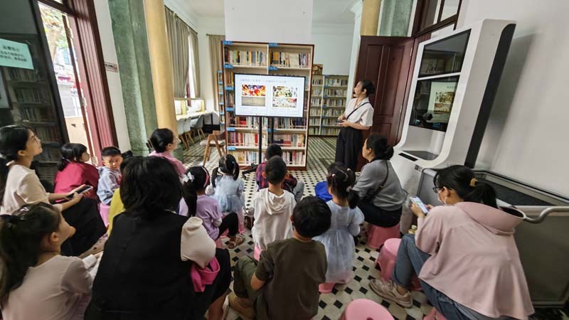 工作人员在小课堂里讲述元宵节由来和传统习俗,还带领大家齐声诵读《元夜》《正月十五夜》等经典诗篇,朗朗书声与节日氛围共融,尽显诗词之美。
